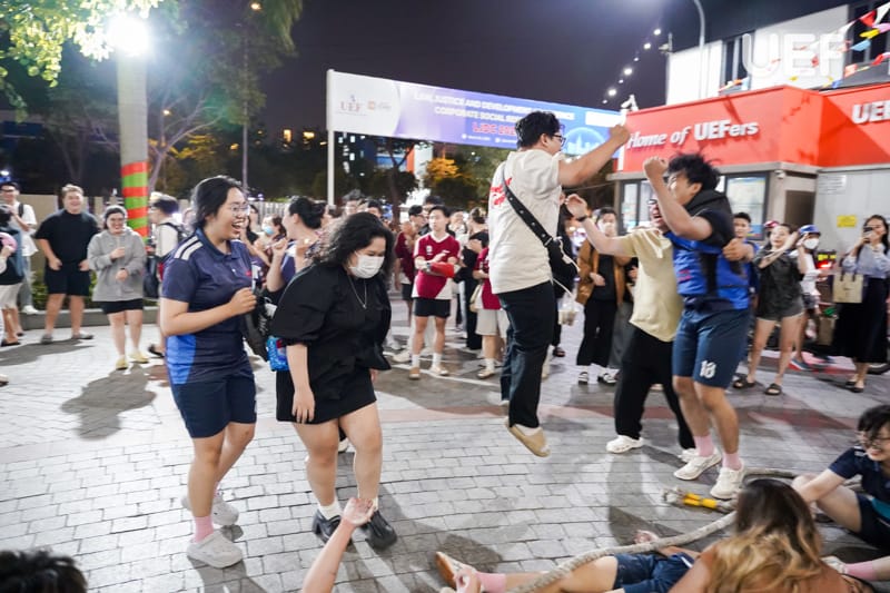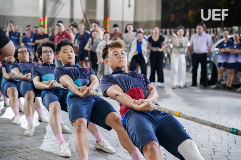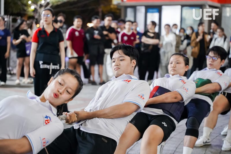 Tối ngày 24/3, lượt trận cuối của vòng bảng bộ môn Kéo co - Olympic UEF 2025 đã diễn ra trong sự vỡ òa cảm xúc khi tìm ra hai đội tiếp theo bước vào vòng Bán kết. Điểm nhấn của lượt trận này là màn giằng co kịch tính giữa Khoa Tiếng Anh và Khoa Quản trị kinh doanh.