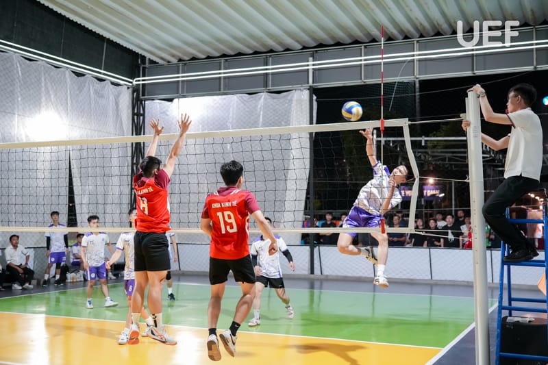 Bóng chuyền nam, một trong những nội dung thi đấu được chờ đợi nhất tại Olympic UEF đã chính thức “chào sân” bằng ba màn đối đầu hấp dẫn. Điểm nhấn của lượt trận đầu tiên là sự tranh tài kịch tính giữa Khoa Tài chính - Kế toán và Khoa Công nghệ thông tin với chiến thắng 2-1 nghiêng về “Nhà FIT”.