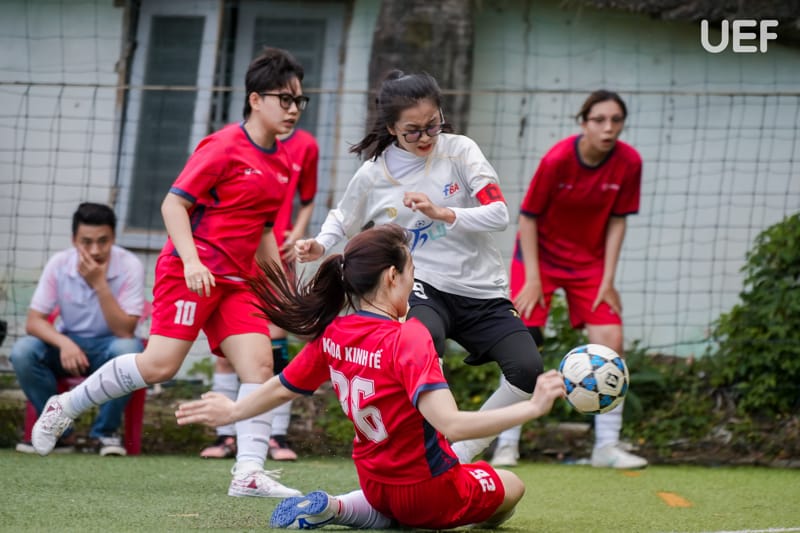 Ở màn thư hùng đầy “duyên nợ”, đội bóng đá nữ Khoa Kinh tế đã thể hiện bản lĩnh vững vàng trong trận Chung kết với Khoa Quản trị kinh doanh, giành chiến thắng 2-0 để lên ngôi vô địch đầy thuyết phục. Lối chơi chắc chắn, tinh thần đoàn kết và chiến thuật hợp lý đã giúp đội bóng này hoàn tất hành trình ấn tượng tại mùa giải năm nay, hai năm liên tiếp giành “ngôi hậu” của bóng đá nữ Olympic UEF.
