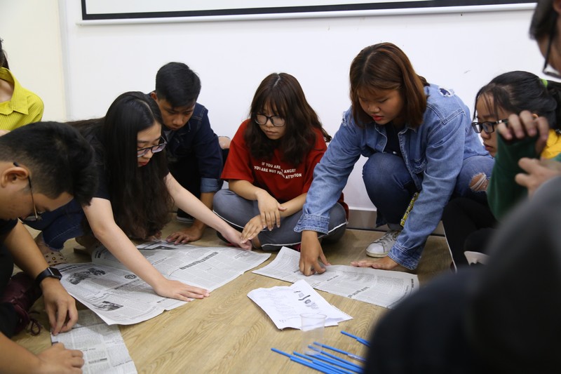 Tân sinh viên giải đáp các câu hỏi và thể hiện sức sáng tạo qua những bài tập nhóm
