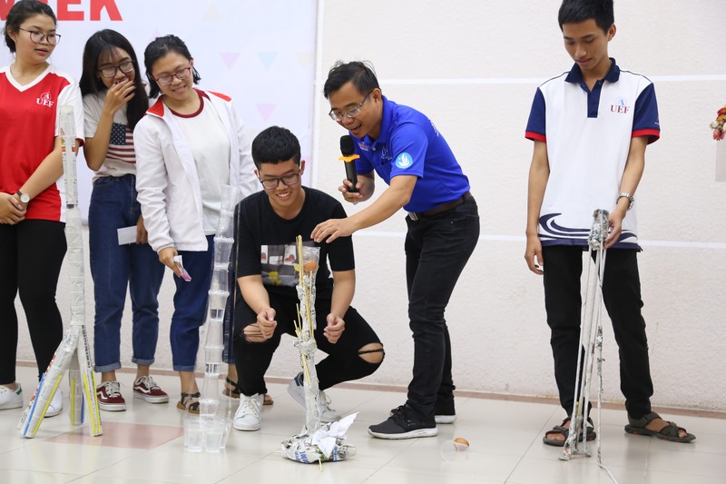 Đặc biệt, không khí buổi sinh hoạt đầu khóa trở nên sôi nổi và tràn đầy năng lượng với phần chuyên đề “Khám phá sự sáng tạo” do CEO UEF chia sẻ. Với lối dẫn dắt đầy cuốn hút, thầy Warren Eng đã giúp các bạn sinh viên được làm quen và đánh thức tư duy sáng tạo. Để sáng tạo tốt các bạn cần biết đặt câu hỏi, phân tích và nhìn vấn đề đa chiều, tận dụng tốt khả năng suy luận, khả năng kết nối,…