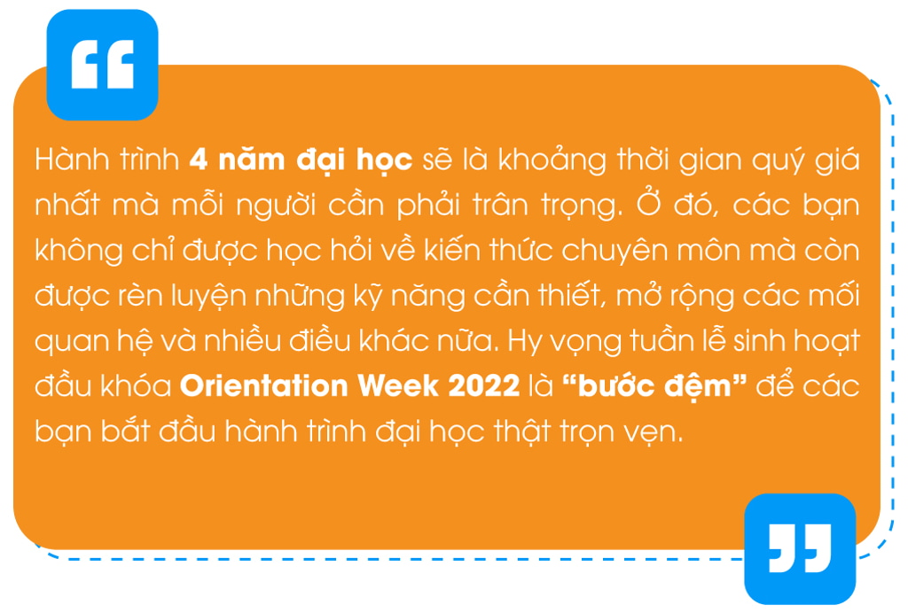 Trong quá trình “nhập gia UEF”, các bạn tân sinh viên đã được làm quen với môi trường học tập và nhiều hoạt động thú vị ở tuần lễ sinh hoạt đầu khóa – Orientation Week 2022. Đây là khóa học bắt buộc, có ý nghĩa quan trọng đối với tân sinh viên trước khi các bạn bắt đầu chương trình học chính thức.