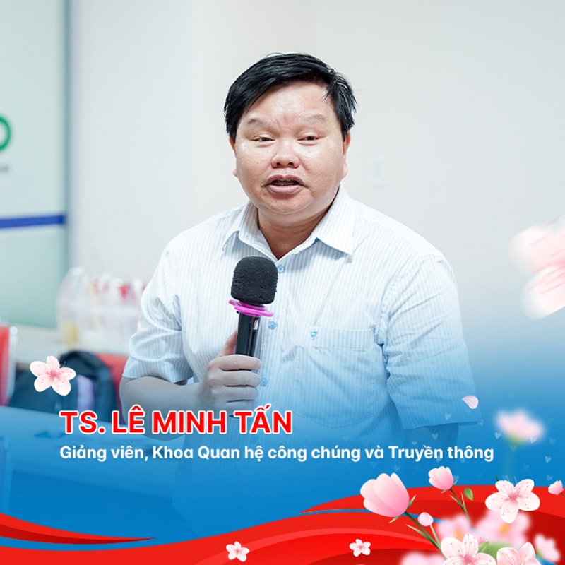Còn đối với TS. Lê Minh Tấn - Giảng viên Khoa Quan hệ công chúng và Truyền thông thì: “Trong xã hội hiện đại, cả “phái mạnh” và “phái đẹp” đều cùng có trách nhiệm phát triển kinh tế và vun đắp cho hạnh phúc gia đình. Có điều, vai trò của người phụ nữ trong thời đại ngày nay nhiều áp lực hơn, bởi các chị, em không chỉ làm tròn thiên chức của người mẹ, sự đảm đang của người vợ, là người luôn giữ cho gia đình “trong ấm, ngoài êm” mà còn phải làm việc, tham gia vào các hoạt động xã hội và cùng chăm lo kinh tế gia đình. Thật may mắn cho các “đấng mày râu” khi có được người phụ nữ đảm đang và cùng chăm lo, vun vén hạnh phúc gia đình như thế. Chúng ta hãy luôn trân trọng những giá trị mà vũ trụ đã ban tặng”.