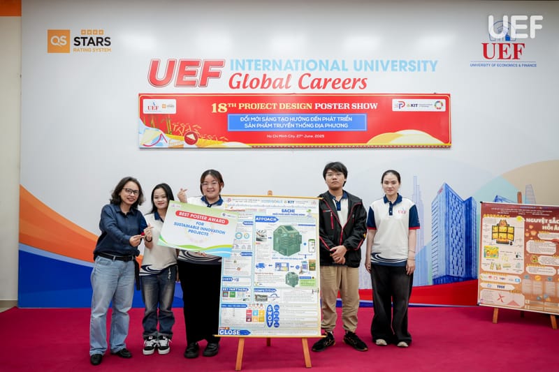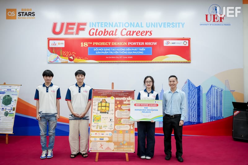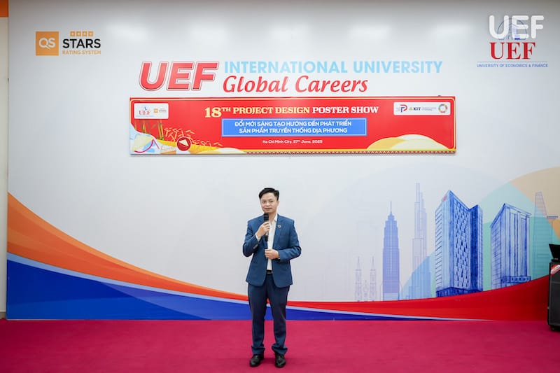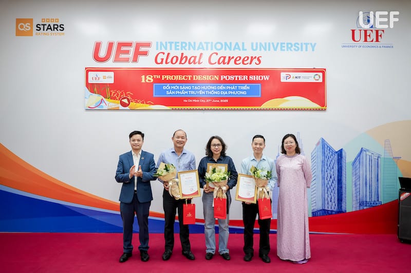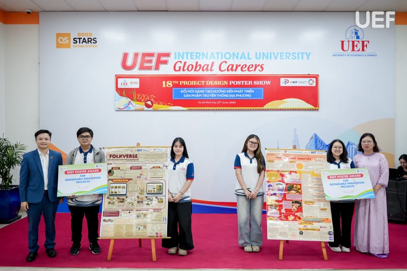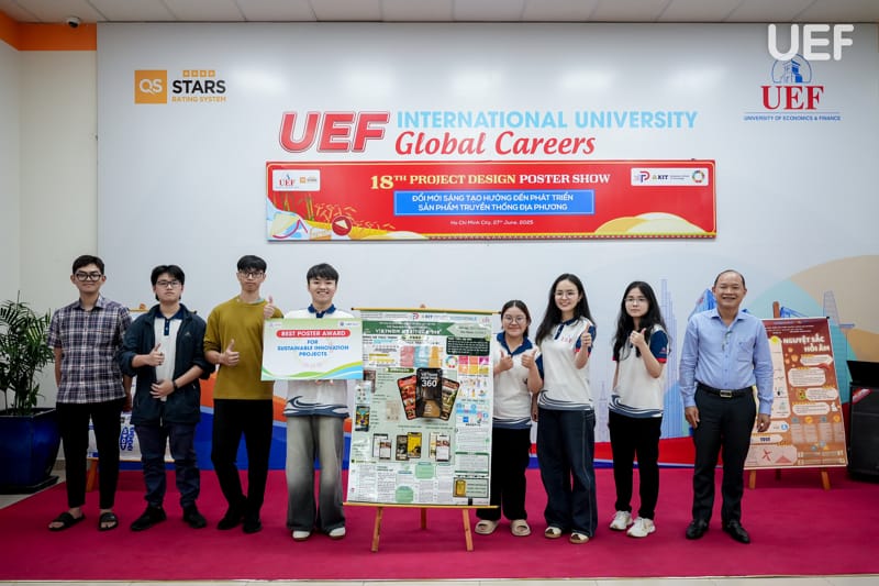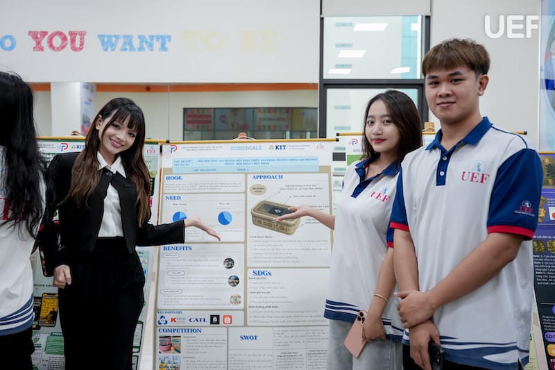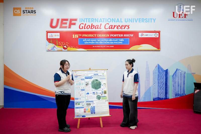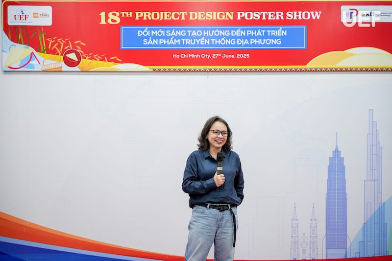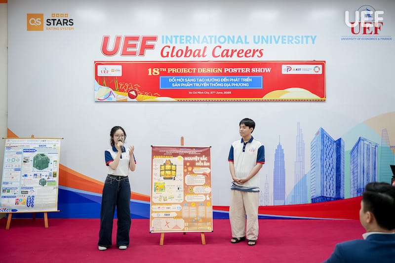 Chiều ngày 27/6, Trung tâm Đào tạo thiết kế dự án UEF đã tổ chức Phiên công bố Poster học phần Project Design 2 (PD2) với chủ đề “Đổi mới sáng tạo hướng đến phát triển sản phẩm truyền thống địa phương”. Đây là hoạt động học thuật thường niên mang tính ứng dụng cao, là dịp để sinh viên trình bày thành quả học tập thông qua các sản phẩm thiết kế sáng tạo, gắn kết giữa giá trị văn hóa truyền thống và tư duy hiện đại của người trẻ.