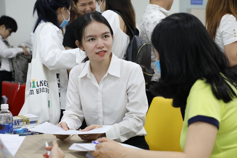 Sinh viên K2017 hồi hộp chờ đợi cơ hội phỏng vấn với nhà tuyển dụng