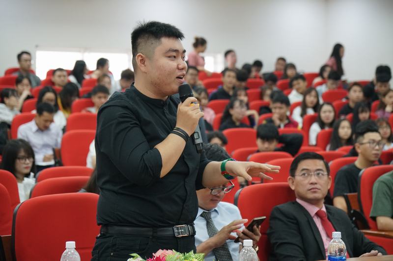 Sinh viên tham dự talkshow đặt rất nhiều câu hỏi về vấn đề kinh doanh, khởi nghiệp