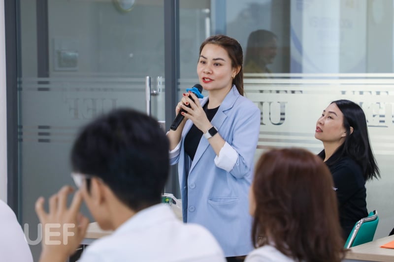 Tiếp đó, lần lượt từng đại diện của các công ty đã giới thiệu, giao lưu, chia sẻ với sinh viên UEF về các vị trí công việc mà sinh viên ngành này có thể theo đuổi như: outbound, marketing trong du lịch, inbound cho khách nước ngoài, nhân viên sale du lịch,...