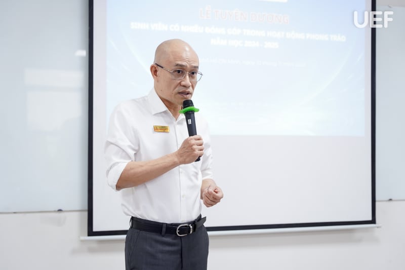 Thầy chia sẻ: “Bốn năm trên giảng đường đại học là khoảng thời gian “vàng” để các bạn rèn luyện kỹ năng, tích lũy kinh nghiệm và xây dựng tác phong làm việc chuyên nghiệp. Việc tham gia Đoàn - Hội, các câu lạc bộ hay các cuộc thi sẽ là cơ hội giúp các bạn rèn luyện được kỹ năng mềm, mở rộng mối quan hệ và học hỏi thêm nhiều điều bổ ích. Thầy hy vọng các bạn sẽ luôn chủ động tham gia trải nghiệm, học hỏi, tích lũy kinh nghiệm và trang bị cho mình hành trang vững vàng cho chặng đường tương lai”.