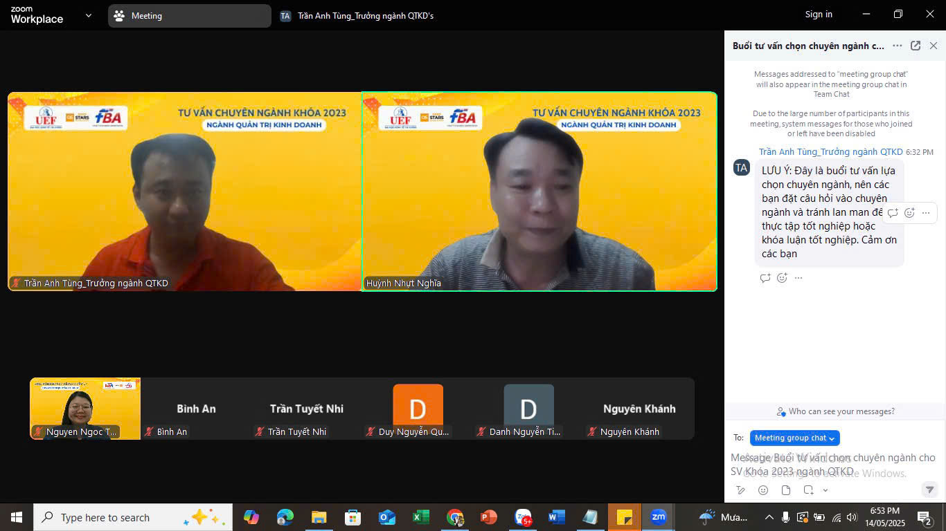 Sáng ngày 12/5, Khoa Quản trị kinh doanh (FBA) UEF đã tổ chức buổi tư vấn định hướng chuyên ngành cho sinh viên khóa 2023 ngành Quản trị kinh doanh. Buổi định hướng là cơ hội để các bạn sinh viên tiếp cận cụ thể hơn với từng chuyên ngành, từ đó có lựa chọn phù hợp với sở thích, năng lực và định hướng nghề nghiệp trong tương lai.