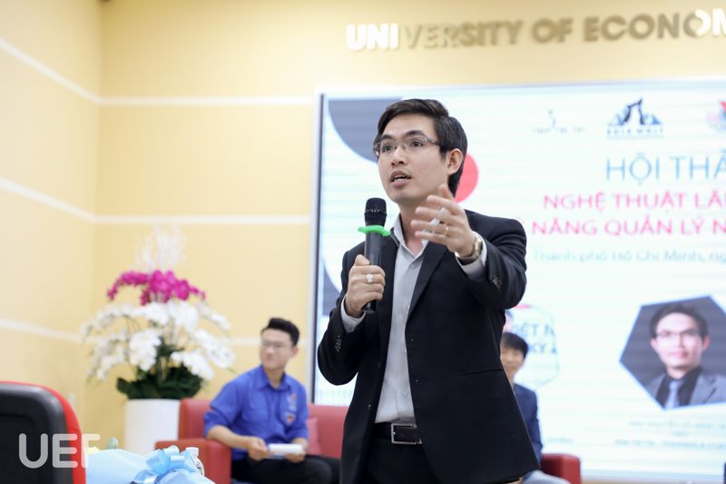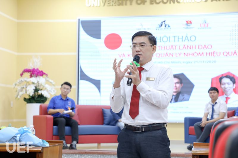 Tư duy lãnh đạo, làm việc và quản lý đội nhóm luôn là nhóm kỹ năng được đề cao với sinh viên UEF. Vì thế, workshop "Nghệ thuật lãnh đạo và kỹ năng quản lý nhóm hiệu quả" do Liên chi Đoàn khoa Kinh tế UEF tổ chức chiều 21/11 đã thu hút gần 200 sinh viên là cán bộ lớp, cán bộ Đoàn của khoa tham gia tập huấn. Qua cuộc trò chuyện cùng khách mời và hoạt động teambuilding sôi nổi, đội ngũ “lãnh đạo trẻ” của khoa Kinh tế đã thu được nhiều bài học quý giá.