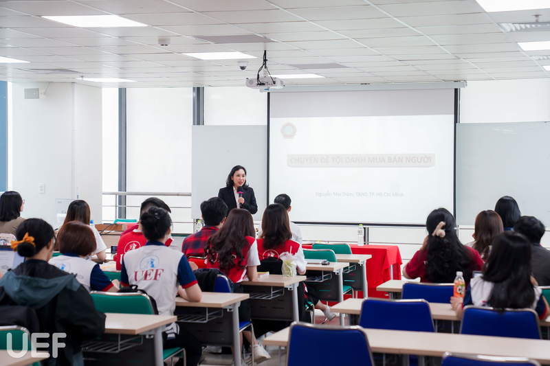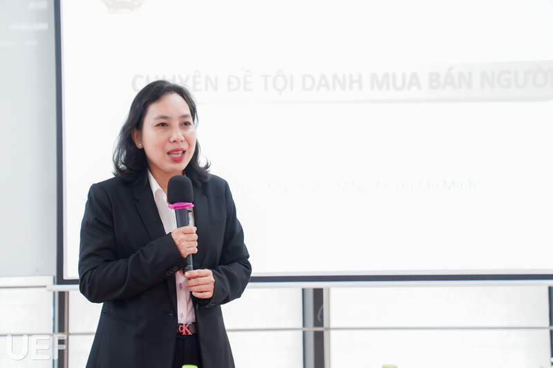 Nhằm giúp sinh viên UEF nói chung và sinh viên Khoa Luật nói riêng nâng cao nhận thức về pháp luật hình sự, đặc biệt là các vụ án mua bán người; Đồng thời phát triển năng lực tư duy, thu thập và xử lý thông tin, đánh giá các chứng cứ trong vụ án, vào ngày 1/10 vừa qua, Khoa Luật phối hợp cùng Liên chi Hội sinh viên khoa đã tổ chức chuyên đề “Tội danh mua bán người” với sự đồng hành của Thẩm phán Nguyễn Mai Trâm - Tòa án Nhân dân TP.HCM.