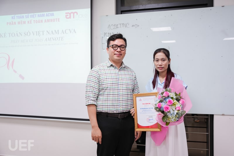 ThS. Nguyễn Thanh Lâm – Phó Trưởng khoa Tài chính - Kế toán trao thư cảm ơn đến diễn giả