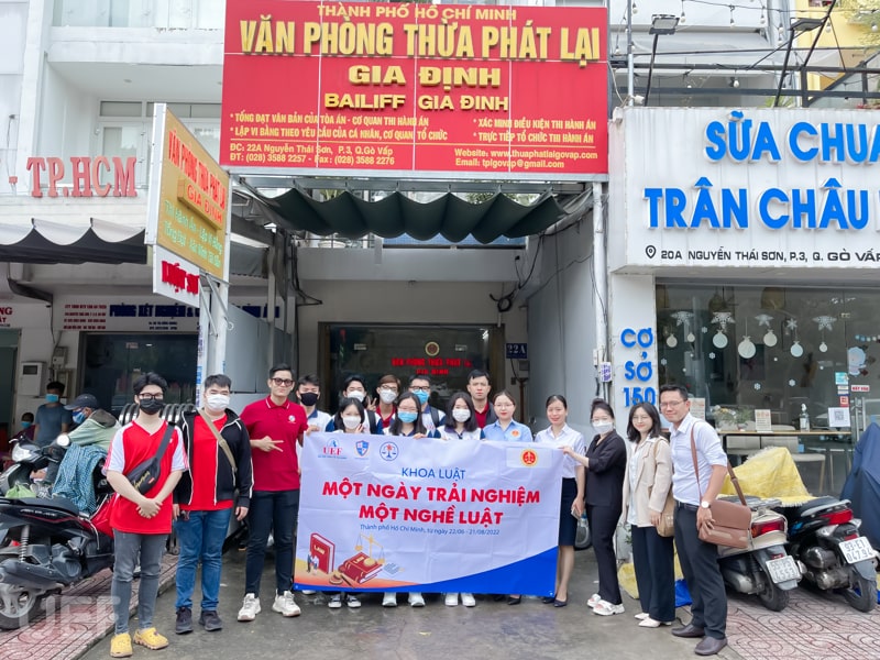 Hoạt động "Một ngày trải nghiệm một nghề luật" của sinh viên Khoa Luật UEF tiếp tục diễn ra vào sáng nay - ngày 21/7. Địa điểm trong chuyến đi học tập thực tế lần này là Văn phòng Thừa phát lại Gia Định.
