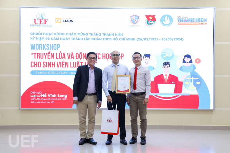 Tham gia chia sẻ và truyền động lực cho sinh viên tại buổi workshop có diễn giả - Luật sư Hồ Vĩnh Long - Giám đốc pháp chế Ngân hàng HSBC, Giảng viên Khoa Luật UEF và khách mời là ThS. Hồ Anh Phụng - Cựu sinh viên Khoa Luật UEF.