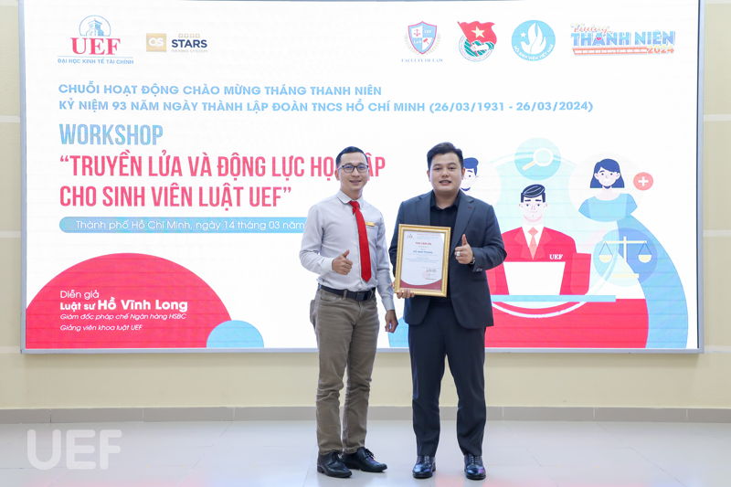 Nhằm giúp các “tân binh” có thêm động lực phấn đấu cũng như phương pháp học tập chuyên ngành hiệu quả, Khoa Luật UEF đã tổ chức nhiều hoạt động giàu giá trị thực tiễn với sự đồng hành của những "người trong nghề". Chiều 14/3, workshop “Truyền lửa và động lực học tập cho sinh viên Luật UEF” do Khoa Luật và Đoàn Thanh niên, Hội sinh viên Khoa Luật UEF tổ chức đã diễn ra thành công.