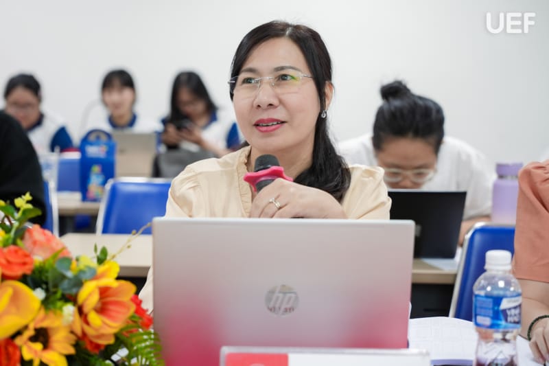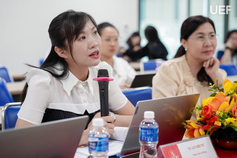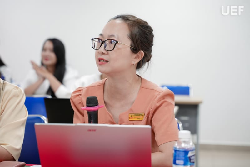 TS. Nguyễn Thị Lan - Trưởng ngành Ngôn ngữ Trung Quốc, Phó Trưởng khoa Ngôn ngữ và Văn hóa quốc tế khích lệ tinh thần nghiên cứu của sinh viên
