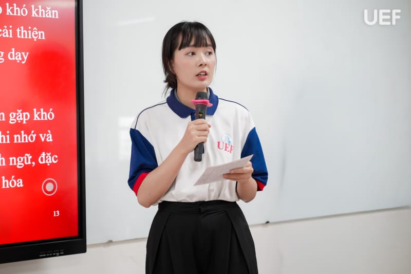 Trong khi đó, đề tài “Học vẹt và đốt cháy giai đoạn” của nhóm Trương Thanh Hằng, Phạm Hoàng Quý Phi, Nguyễn Thị Kim Phượng mang đến góc nhìn thực tiễn về phương pháp học ngoại ngữ. Nhóm đã chỉ ra những hạn chế của việc học thiếu nền tảng, đồng thời đề xuất hướng tiếp cận hiệu quả hơn nhằm nâng cao chất lượng học tập tiếng Trung cho sinh viên.