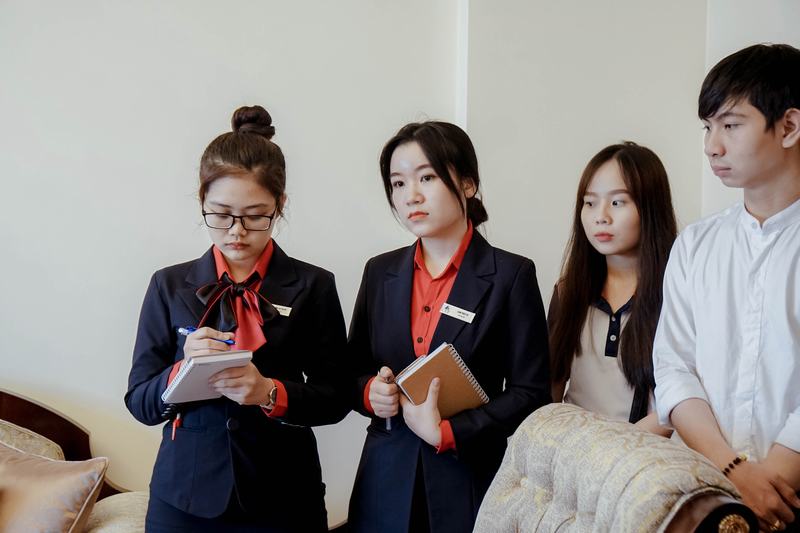 Tại buổi kiến tập, sinh viên UEF được lắng nghe các anh/chị quản lý của khách sạn chia sẻ về mô hình kinh doanh, cách vận hành một tổ chức hay quản lý nhóm nhân sự,... Đặc biệt, các bạn còn được học hỏi những nghiệp vụ khách sạn như: housekeeping, lễ tân, F&B,…