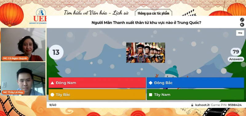 Nhằm giúp các bạn sinh viên ngành Ngôn ngữ Trung Quốc nói riêng và sinh viên UEF nói chung có cơ hội tìm hiểu về văn hóa, lịch sử Trung Quốc thông qua các tác phẩm điện ảnh, khoa Ngôn ngữ và Văn hóa quốc tế đã tổ chức cuộc thi "Tìm hiểu văn hóa - lịch sử Triều đại nhà Thanh thông qua các tác phẩm điện ảnh Trung Quốc", vào chiều ngày 20/12 vừa qua.