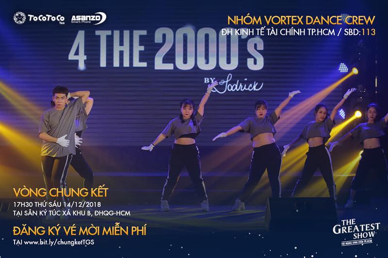 Vượt qua 3 vòng tuyển chọn loại trừ khắc nghiệt, nhóm nhảy Vortex Crew của sinh viên UEF đã lọt vào top 10 thí sinh xuất sắc nhất, tiến thẳng vào đêm Chung kết cuộc thi The Greatest Show - Tài năng Sinh viên TP.HCM.
