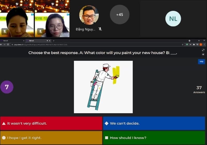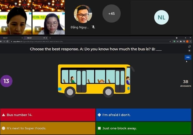Trò chơi Kahoot! cuối chương trình giúp các bạn rèn luyện thêm câu giao tiếp tiếng Anh
