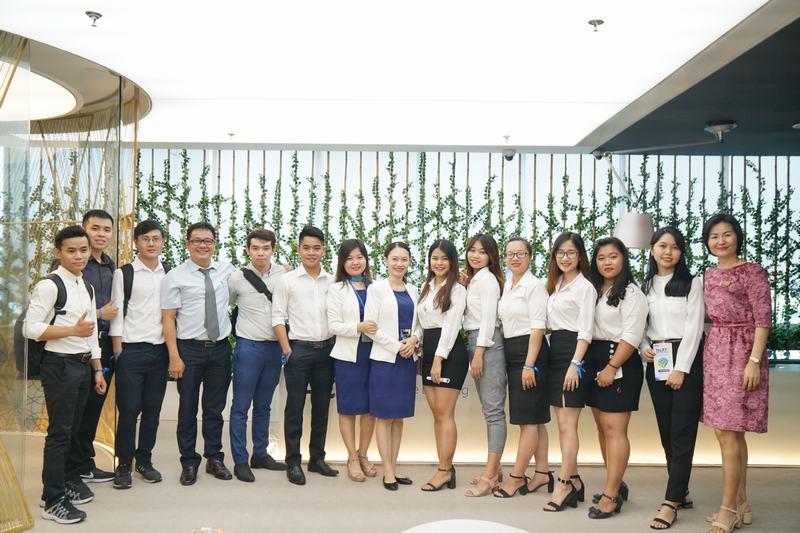 Sau phần giới thiệu chung, sinh viên UEF tiếp tục tham quan môi trường làm việc thực tế tại Sacombank