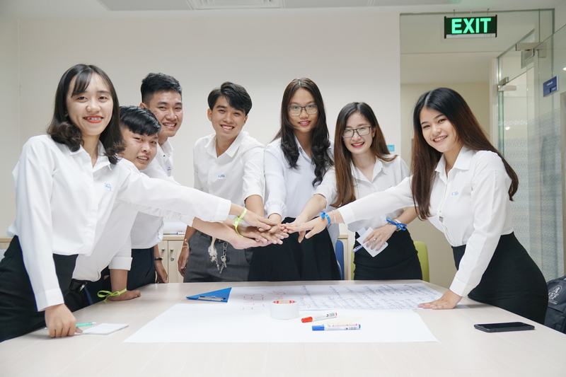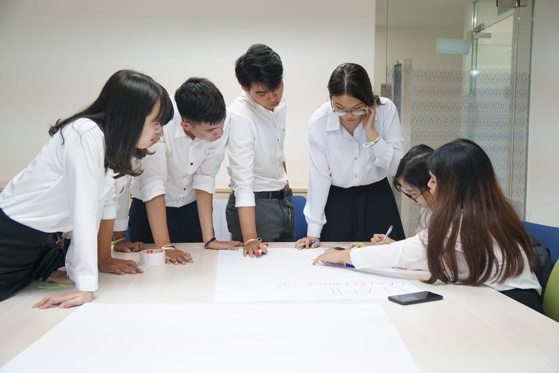 Sinh viên UEF phát huy kỹ năng làm việc nhóm để giải quyết các bài tập từ phía ngân hàng đưa ra