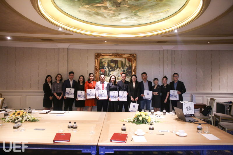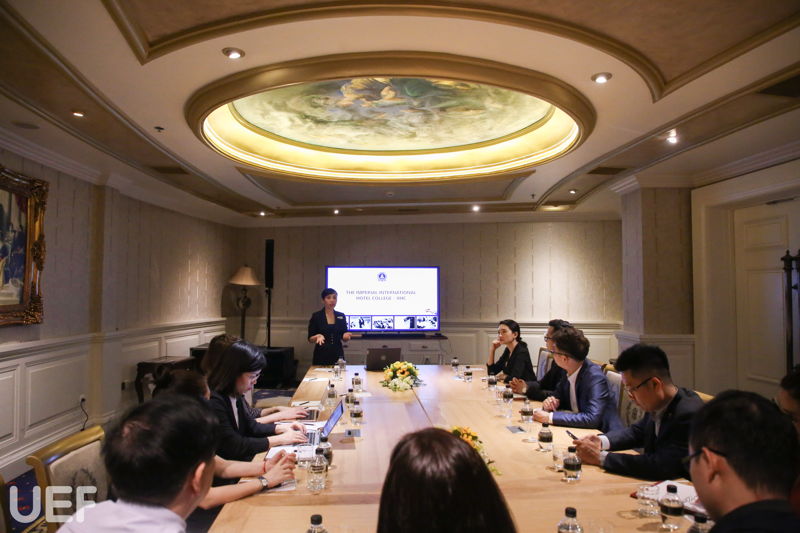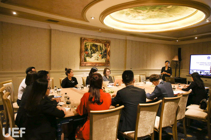 Đại diện UEF làm việc với tập đoàn Imperial gồm có TS. Đỗ Hữu Nguyên Lộc - Phó Hiệu trưởng Nhà trường, lãnh đạo Viện quốc tế, lãnh đạo khoa Quản trị du lịch - khách sạn, khoa Tiếng Anh và Trung tâm Hợp tác doanh nghiệp.