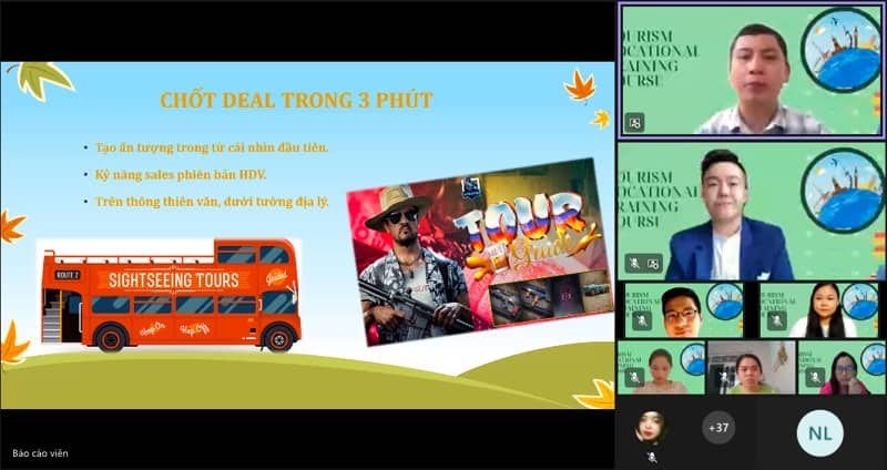 Kỹ năng sale trong du lịch cũng là điều quan trọng mà các bạn cần lưu ý, sau clip minh họa những lỗi sai ở kỹ năng này, anh Chấn Huy chia sẻ khi giao tiếp với khách hàng, hướng dẫn viên cần chú ý cách xưng hô khiêm nhường, lắng nghe nhu cầu của khách hàng để lựa chọn dịch vụ phù hợp, phải trình bày rõ ràng các tình huống có thể xảy ra và cách xử lý cho khách hàng biết.