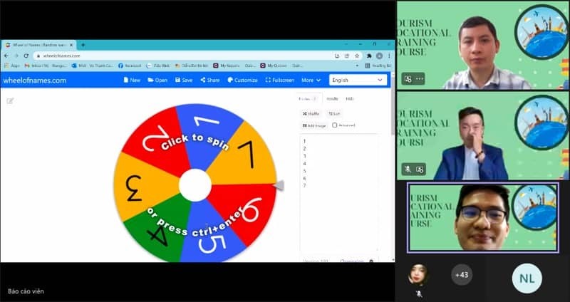 Các nhóm sinh viên bốc thăm chọn chủ đề và thực hành xử lý các tình huống trong du lịch
