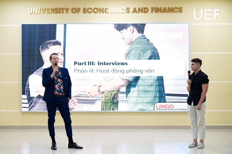 Sự kiện cũng có sự tham gia của Á hậu Hoàng Kim Chi - Miss Fire của cuộc thi Miss Earth Vietnam 2023 và chị Lê Phan Ngọc Khánh - Hoa khôi Miss UEF 2022, những khách mời đã truyền thêm cảm hứng cho các bạn sinh viên với câu chuyện học ngoại ngữ của bản thân.