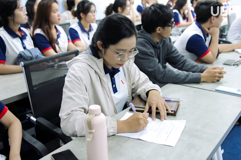 Sinh viên chú ý lắng nghe và ghi chép những lưu ý quan trọng