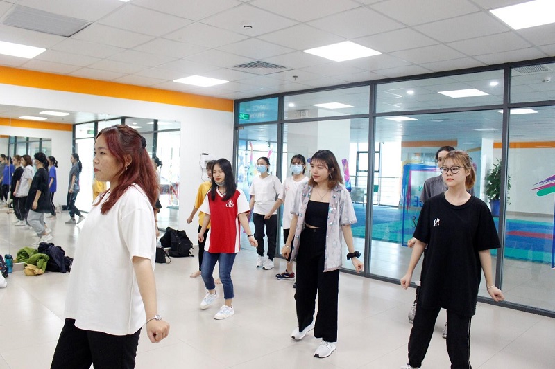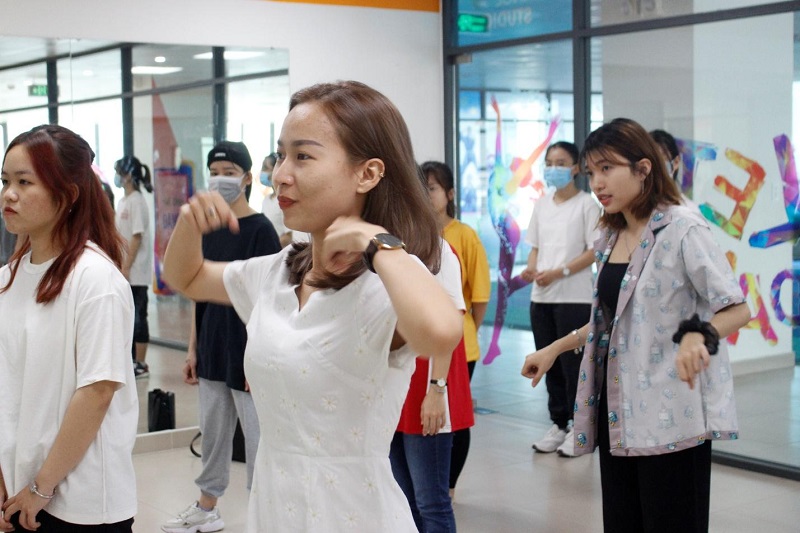 Chị Bùi Khánh Linh – Chuyên viên Phòng Công tác sinh viên tập huấn kỹ năng biên đạo