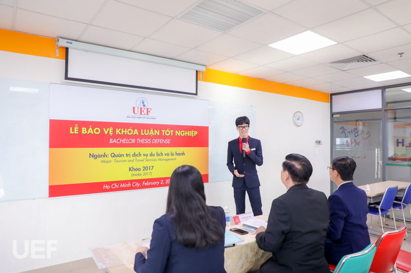 Trong suốt ngày 2/2, khoa Kinh tế đã tổ chức cho 4 ngành Quản trị kinh doanh, Quản trị nhân lực, Marketing và Kinh doanh quốc tế bảo vệ khóa luận tốt nghiệp. Với 11 bạn của ngành Quản trị kinh doanh, nổi bật là đề tài của sinh viên Nguyễn Ngọc Tài khi bạn nghiên cứu cho chính cơ quan thực tập của mình.