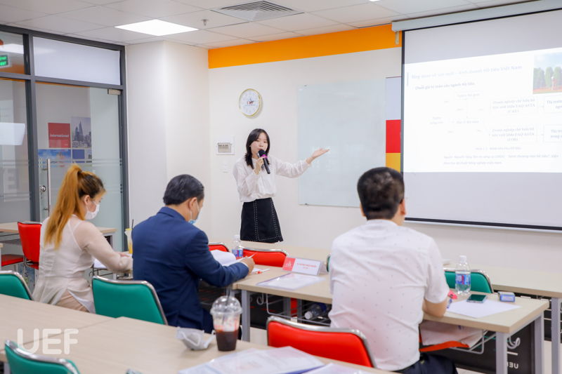 Chiều cùng ngày, chuyên ngành Tổ chức sự kiện có 6 sinh viên tham gia bảo vệ khóa luận tốt nghiệp. Trong đó, bạn Đỗ Hương Thảo trình bày luận văn bằng tiếng Anh với đề tài "The trend of Personalized Event Experience in VietNam".