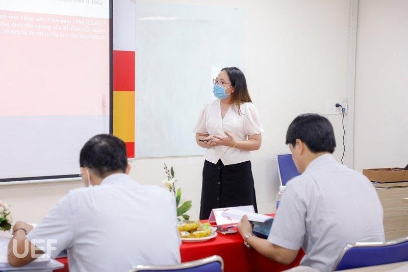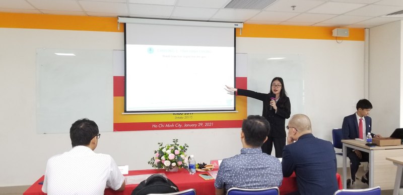 Tiếp đó là ngành Ngôn ngữ Anh vào ngày 1/2. Khóa 2017 - 2021 có 6 bạn tham gia bảo vệ. Trong đó, bạn Huỳnh Thị Thảo Hiền với đề tài “A study on the quality of English - Vietnamese translation of business idioms by English - majored students at a university in Ho Chi Minh City" được đánh giá cao với điểm trung bình của Hội đồng là 9,3.