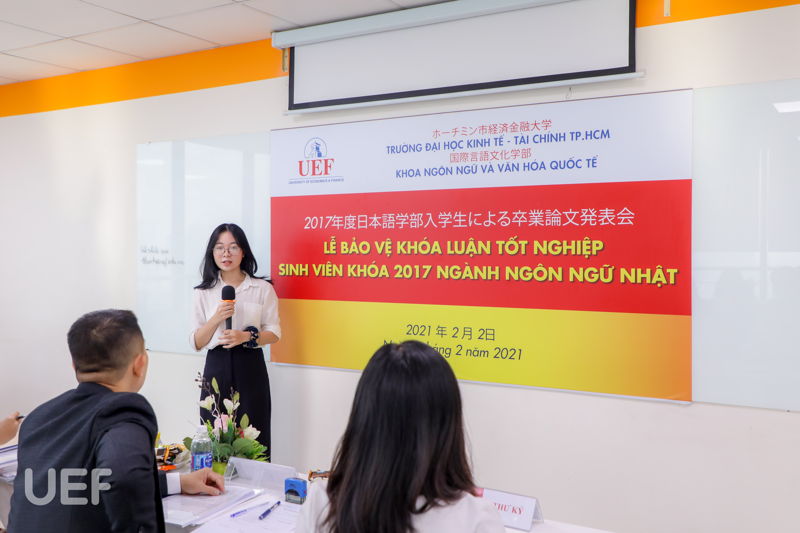 Ngày 2/2, khóa sinh viên đầu tiên của ngành Ngôn ngữ Nhật đã có buổi lễ bảo vệ khóa luận tốt nghiệp thành công. Trong 5 bạn tham gia bảo vệ, có những đề tài ấn tượng như: “Các phương thức bổ trợ khi tự học tiếng Nhật” (bạn Trần Thị Cẩm Vân), “Giới thiệu sơ lược về kính ngữ trong tiếng Nhật thương mại” (Nguyễn Hồng Nhung).