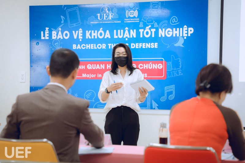 Chuyên ngành Báo chí - Truyền thông có 6 đề tài bảo vệ trong buổi sáng. Một số đề tài điển hình như: “Nghiên cứu sử dụng linh vật (Mascot) nhằm gia tăng hiệu quả truyền thông cho dịch vụ tài chính trên thế hệ Z" (bạn Trần Nguyễn Ngọc Anh), “Nghiên cứu vai trò truyền thông nội dung trên các trang mạng xã hội trong chiến lược xây dựng thương hiệu cho nhãn hàng công nghệ nước ngoài khi tiếp cận thị trường Việt Nam (Case study: LG, Samsung, Sony)” (bạn Trần Đoàn Cát Quỳnh), “Xu hướng truyền thông của lĩnh vực F&B tại TP.HCM dưới ảnh hưởng Covid-19: trường hợp Golden Gate Restaurant Group" (bạn Nguyễn Đoàn Phi Nhung),...