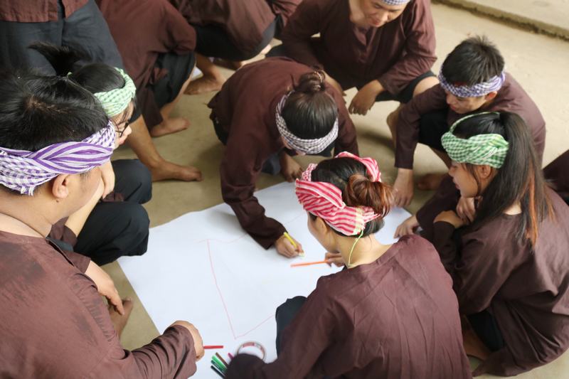 Các bạn sinh viên cùng nhau vượt qua những thử thách thú vị trong hoạt động teambuilding