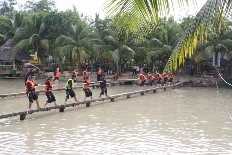 Sau buổi học tập thực tế, tham quan mô hình sản xuất kẹo dừa, các bạn sinh viên tiếp tục có những trải nghiệm thú vị tại khu du lịch Lan Vương.