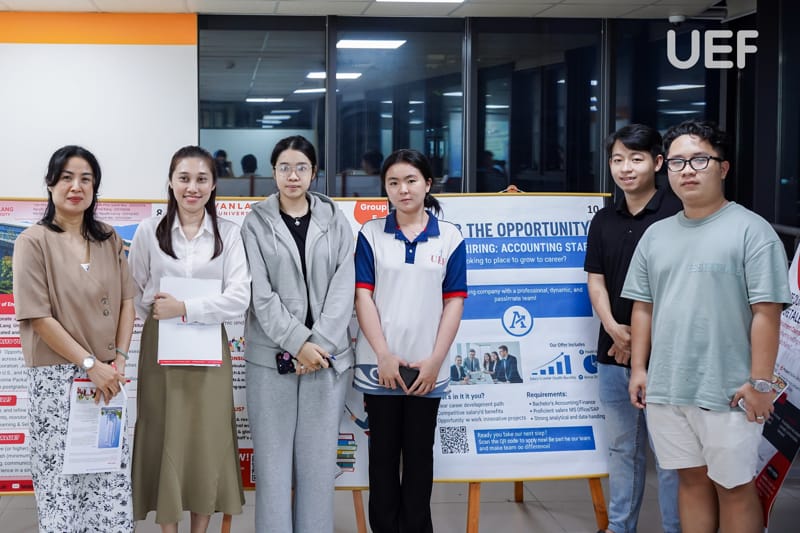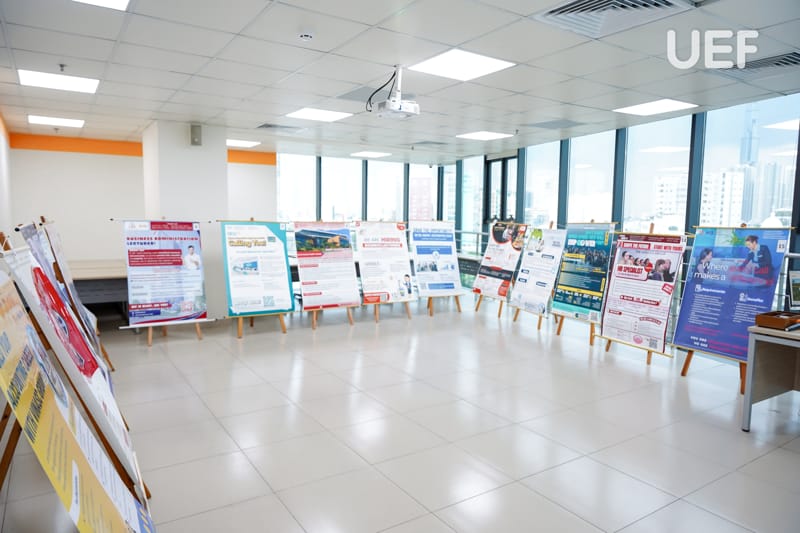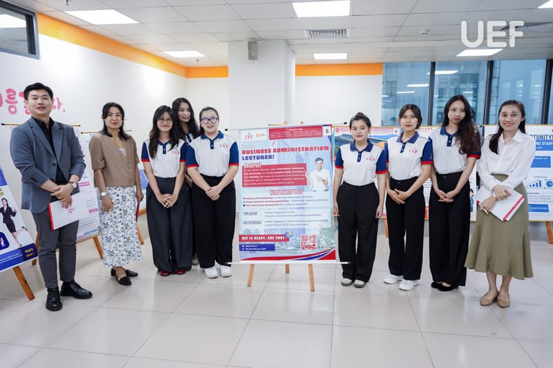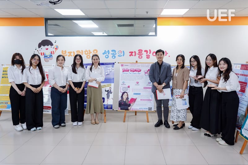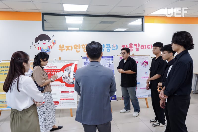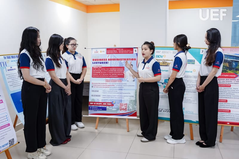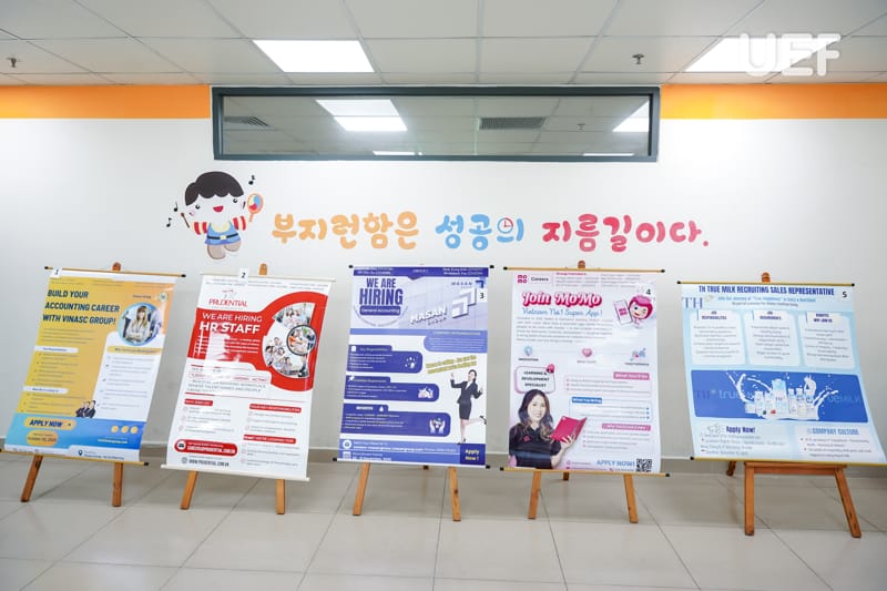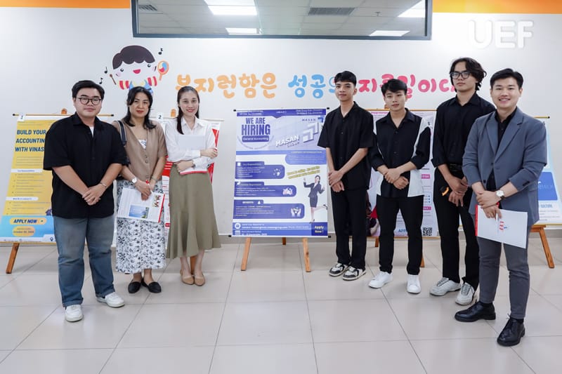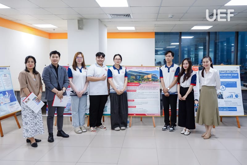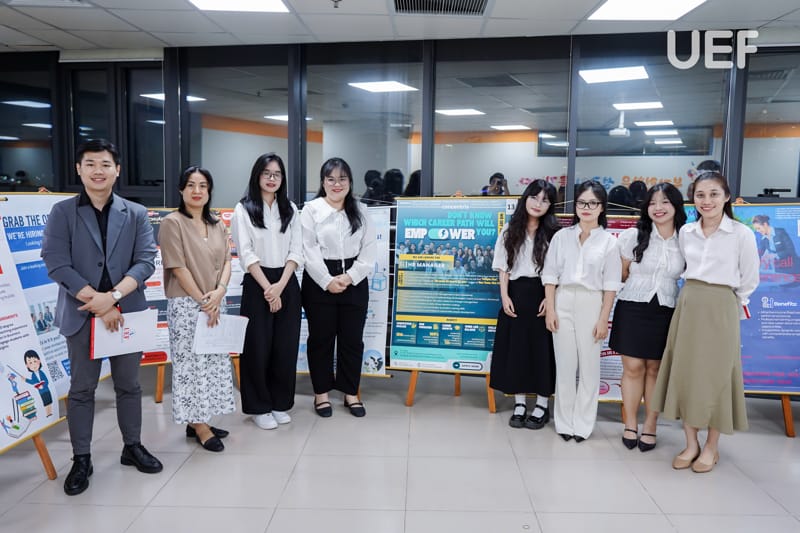 Bên cạnh phần chia sẻ, chương trình còn là dịp để sinh viên thể hiện kết quả học tập thông qua 15 đề tài dự án nhóm, được trình bày dưới dạng poster, với các chủ đề thực tế về tuyển dụng, kế toán, đào tạo - phát triển nhân sự, quản trị kinh doanh,…