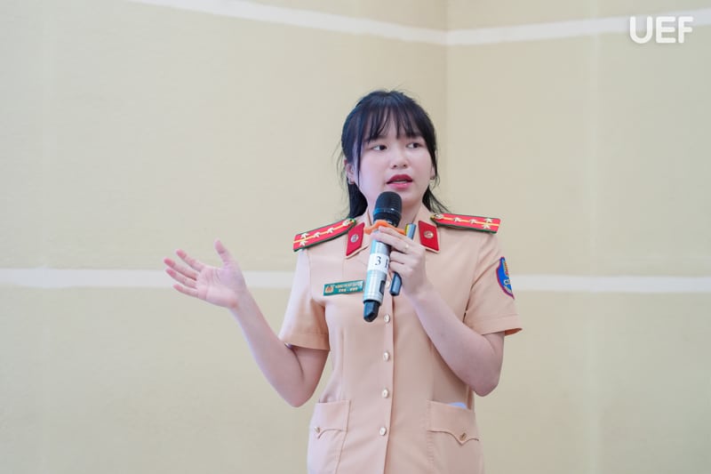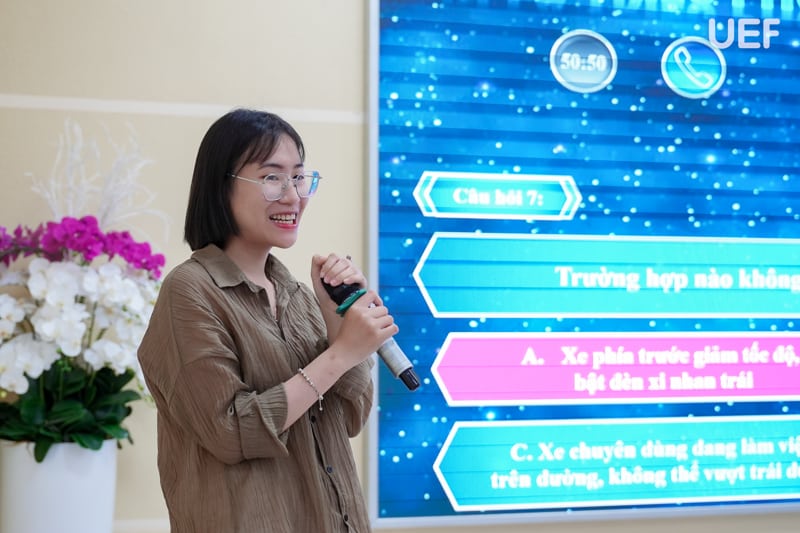 Bên cạnh phần lý thuyết, sinh viên được quan sát các tình huống tai nạn giao thông thực tế đã xảy ra trên đường, từ đó rút ra những bài học kinh nghiệm thiết thực cho bản thân. Không khí chương trình trở nên sôi nổi khi UEFers tích cực tương tác, chủ động tham gia trả lời các câu hỏi ôn tập, qua đó góp phần củng cố và ghi nhớ hiệu quả các kiến thức vừa tiếp nhận.