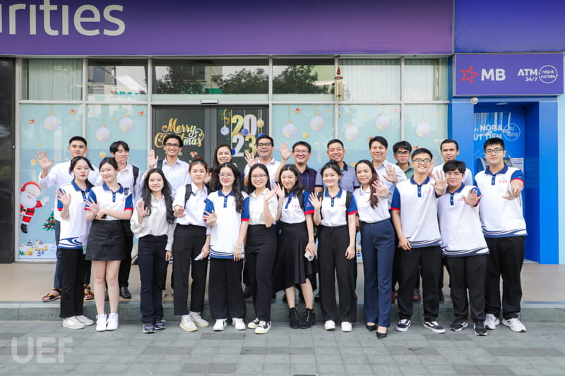 Những ngày cuối năm 2022, bên cạnh việc học chuyên môn, tham gia các hoạt động ngoại khóa, cuộc thi sôi nổi, sinh viên UEF vẫn tích cực đến với doanh nghiệp để cọ xát thực tế. Sáng ngày 28/12, sinh viên ngành Tài chính quốc tế, Khoa Tài chính - Thương mại đã có cơ hội tham quan, tìm hiểu những hoạt động của Ngân hàng MB và công ty Cổ phần Chứng khoán MB Securities (MBS).
