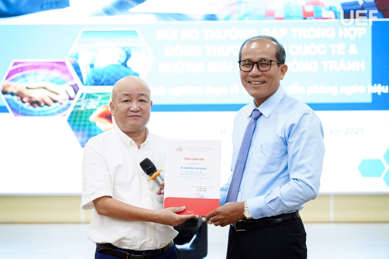 Với chủ đề này, diễn giả Nguyễn Văn Sáng mang đến cho sinh viên nhiều kiến thức chuyên sâu cùng những câu chuyện thực tiễn sinh động. Xuất phát từ kinh nghiệm nhiều năm trong lĩnh vực đầu tư, thương mại và quản lý dự án, diễn giả giúp sinh viên UEF nhận diện rõ những rủi ro thường gặp khi ký kết và thực thi hợp đồng thương mại quốc tế.