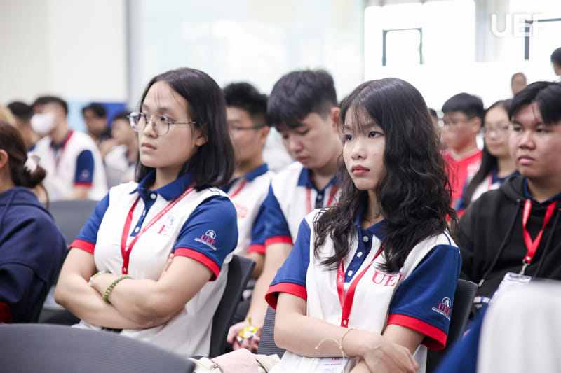 Phần Q&A diễn ra sôi nổi với nhiều câu hỏi từ sinh viên về môi trường làm việc, cơ hội phát triển và yêu cầu tuyển dụng. Sinh viên bày tỏ sự hứng thú với môi trường làm việc năng động tại FPT Software. Kết thúc buổi workshop, đại diện FPT Software đã mời sinh viên tham gia các chương trình thực tập, fresher và tuyển dụng chính thức. Đây là cơ hội vàng để UEFers bước vào môi trường công nghệ cao và phát triển sự nghiệp tương lai.