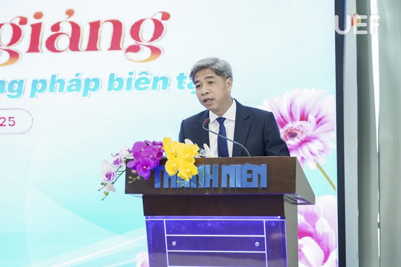 Phát biểu tại buổi lễ khai giảng, Nhà báo Nguyễn Ngọc Toàn bày tỏ niềm vui khi đón các bạn sinh viên UEF tham gia học thực hành tại Báo Thanh Niên: “Đây là bước ngoặt đánh dấu sự phát triển của mối quan hệ hợp tác giữa UEF và Báo Thanh Niên, sự gắn kết giữa lý thuyết và thực hành, giữa giảng đường và môi trường báo chí chuyên nghiệp. Chúng tôi hy vọng sinh viên không chỉ tiếp thu kiến thức chuyên môn về phương pháp biên tập, mà còn được trải nghiệm nhiều kỹ năng trong lĩnh vực báo chí từ báo in, báo điện tử đến các nội dung số. Đồng hành với sinh viên trong học phần này là các nhà báo giàu kinh nghiệm, đồng thời báo cũng tích hợp phần mềm tòa soạn giả lập để các bạn được trang bị kỹ năng sát với thực tiễn nhất”.