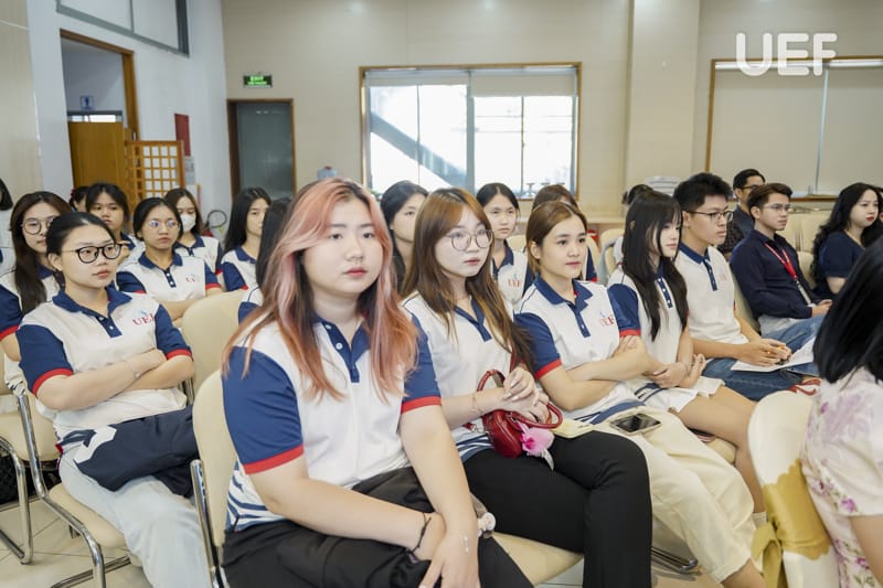 Đại diện UEF tham dự chương trình có TS. Nguyễn Thanh Giang - Hiệu trưởng, PGS.TS. Hoàng Thị Hồng Hà - Trưởng khoa Quan hệ công chúng và Truyền thông, ThS. Lê Dũng - Trưởng Phòng Đào tạo, ThS. Trương Thị Ngọc Bích - Giám đốc Trung tâm Thông tin - Truyền thông, ThS. Nguyễn Thị Bích Vân - Phó Trưởng khoa Quan hệ công chúng và Truyền thông cùng các giảng viên Khoa.