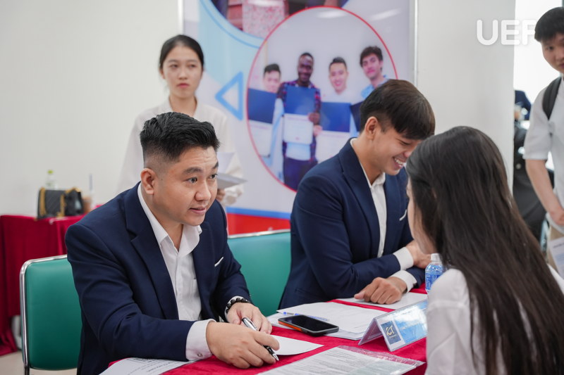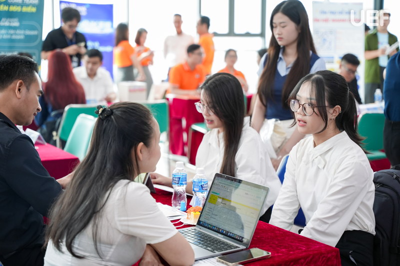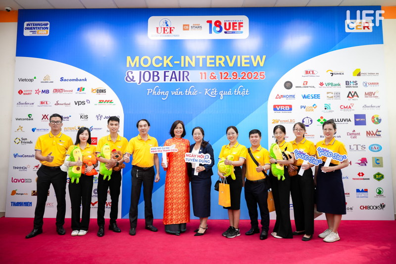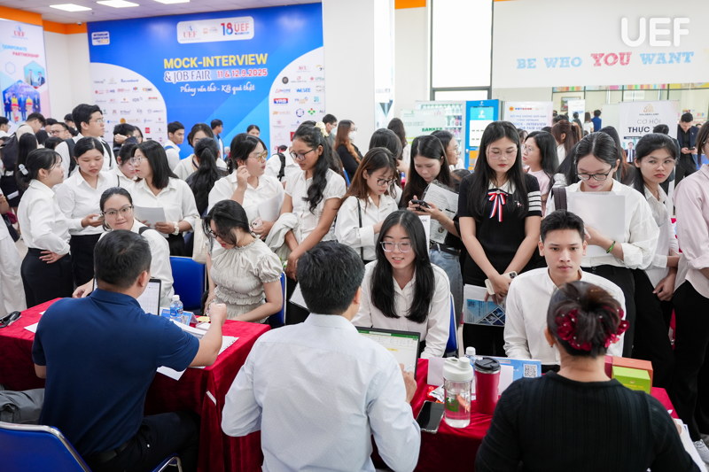 Thêm một mảng màu nổi bật trong bức tranh hợp tác doanh nghiệp năm 2025 tại UEF chính là chuỗi hoạt động Business Matching, Mock Interview & Job Fair được tổ chức bài bản, quy mô và có chiều sâu. Các sự kiện tiêu biểu này đã quy tụ hàng trăm doanh nghiệp đến từ nhiều lĩnh vực, mở ra hàng nghìn cơ hội thực tập và việc làm cho sinh viên cũng như cựu sinh viên UEF.