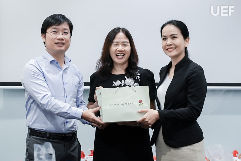 Đại diện Khoa Tài chính - Kế toán dẫn đoàn tham quan là ThS. Lưu Thị Ngọc Quỳnh - Giảng viên khoa. Đón tiếp đoàn UEF có chị Lê Thị Đông - Giám đốc Ngân hàng Shinhan Bank chi nhánh Phường Bảy Hiền cùng các đại diện phòng ban chuyên trách.