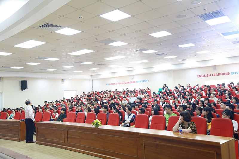 Diễn giả cũng nêu những ví dụ thực tế, sinh động về tính hai mặt của mạng xã hội. Đặc biệt, thầy còn gợi ý những phương pháp học tập, tích lũy kiến thức hiệu quả cho sinh viên.